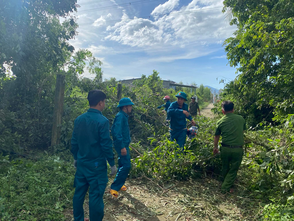 Lực lượng dân quân tự vệ, công an xã, đoàn viên thanh niên cùng người dân đã đồng loạt ra quân dọn dẹp cây ngã đổ, khơi thông đường giao thông, hỗ trợ các hộ dân lợp lại mái nhà, thu dọn vật cản, giúp khôi phục giao thông và đảm bảo vệ sinh môi trường.